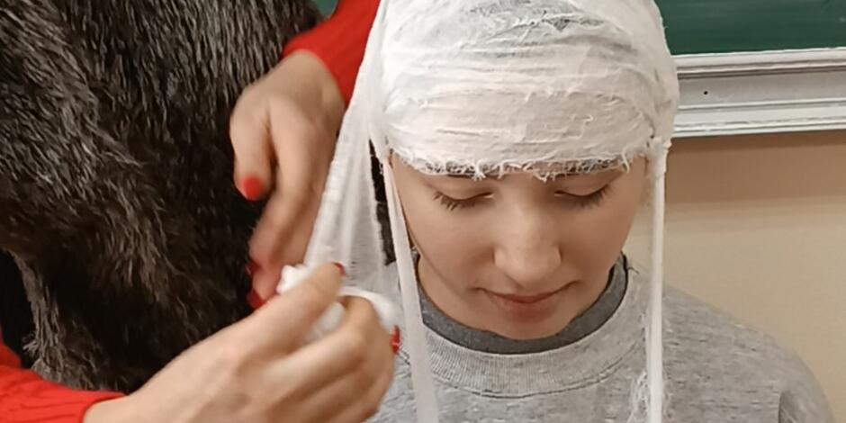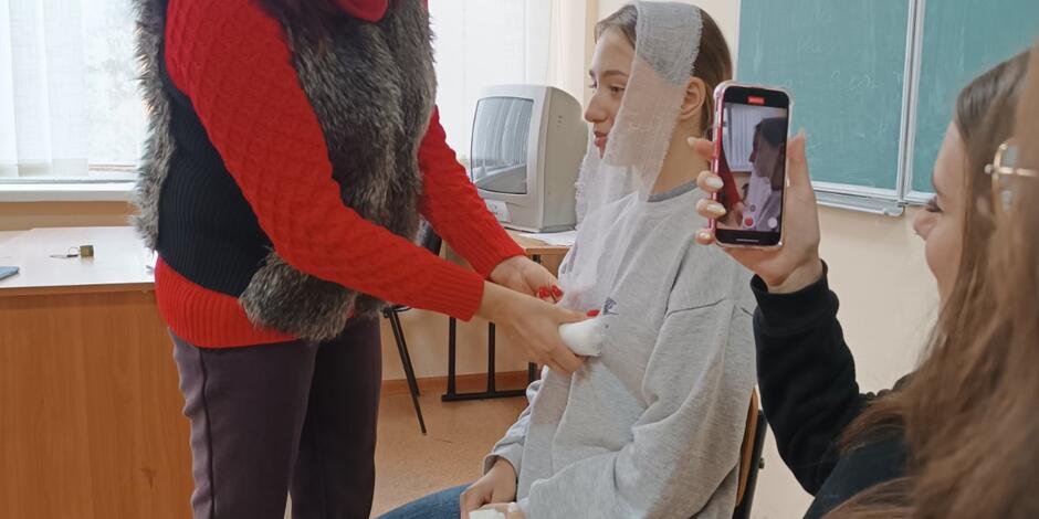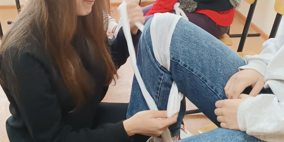Студенти другого курсу спеціальності соціальна робота виконували практичне заняття по першій медичній допомозі. На занятті студенти вчилися надавати базову до медичну допомогу один одному. На практиці відпрацьовували методику та грамотність виконання правил надання першої медичної допомоги в певній послідовності.