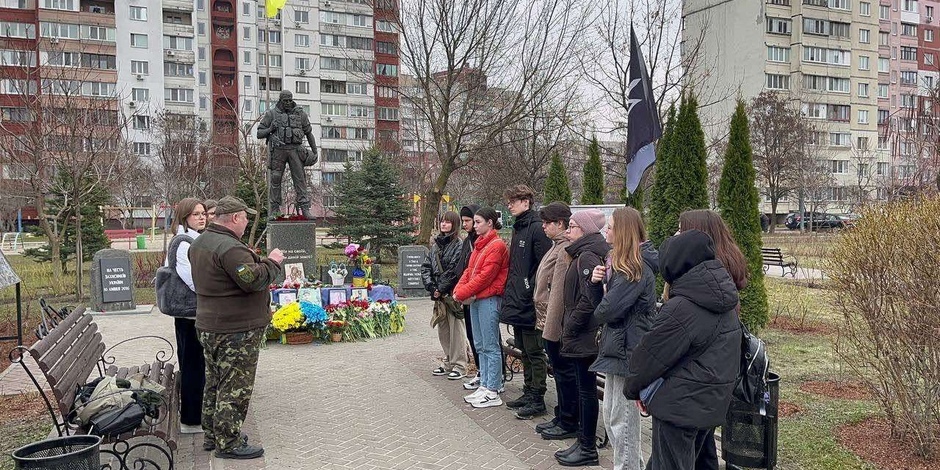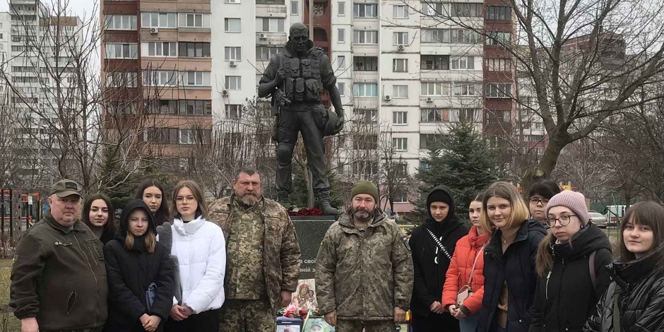 Саме на цьому місці відбулася незапланована, імпровізована але така яскрава на емоції зустріч-бесіда студентів з воїнами-фронтовиками, які прийшли сюди вшанувати Світлу пам'ять своїх побратимів, які полягли на полі бою. Студенти з викладачем подякували воїнам за їх жертовний подвиг, а в свою чергу фронтовики-захисники подякували офіцерові-викладачеві, Олегу Андрійовичу, за військово-патріотичне виховання молоді в умовах жорстокої війни.