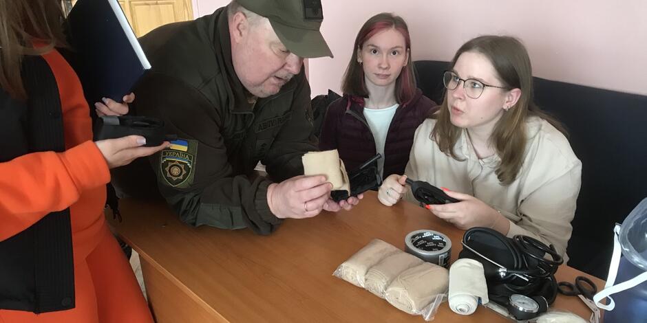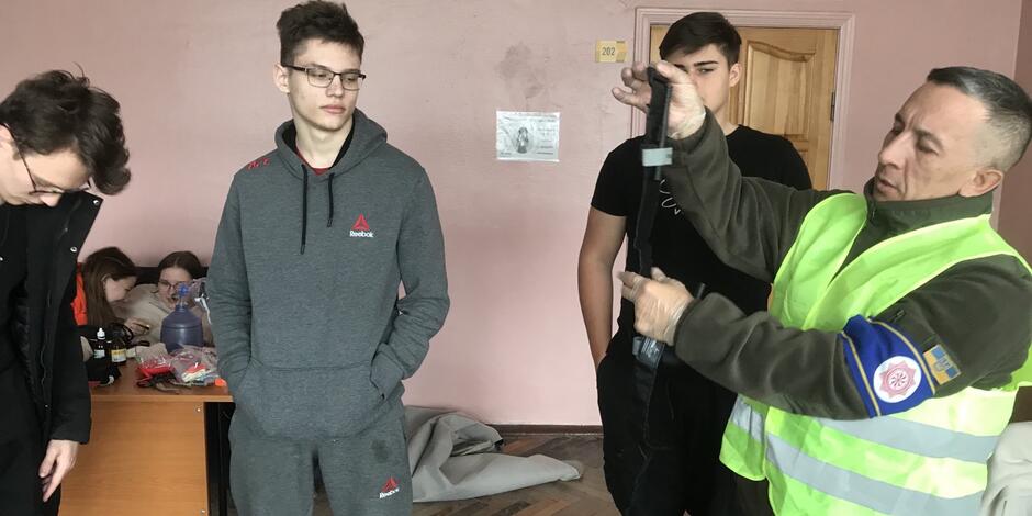 В коледжі на підставі дисципліни "Захист України " був проведен захід ПЕРША ДОМЕДИЧНА ДОПОМОГА ПРИ НАДЗВИЧАЙНІЙ СИТУАЦІЇ, який проводив представник Червоного Хреста