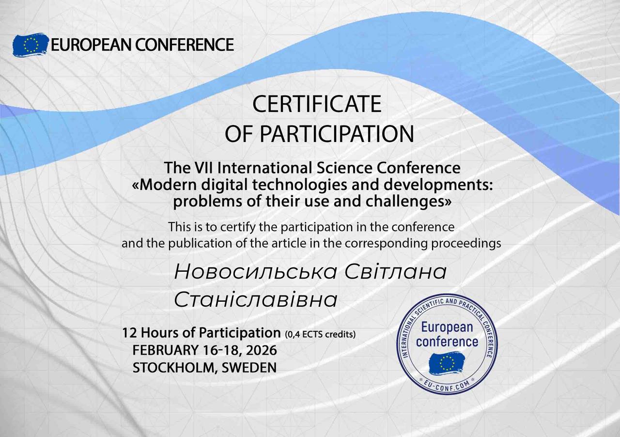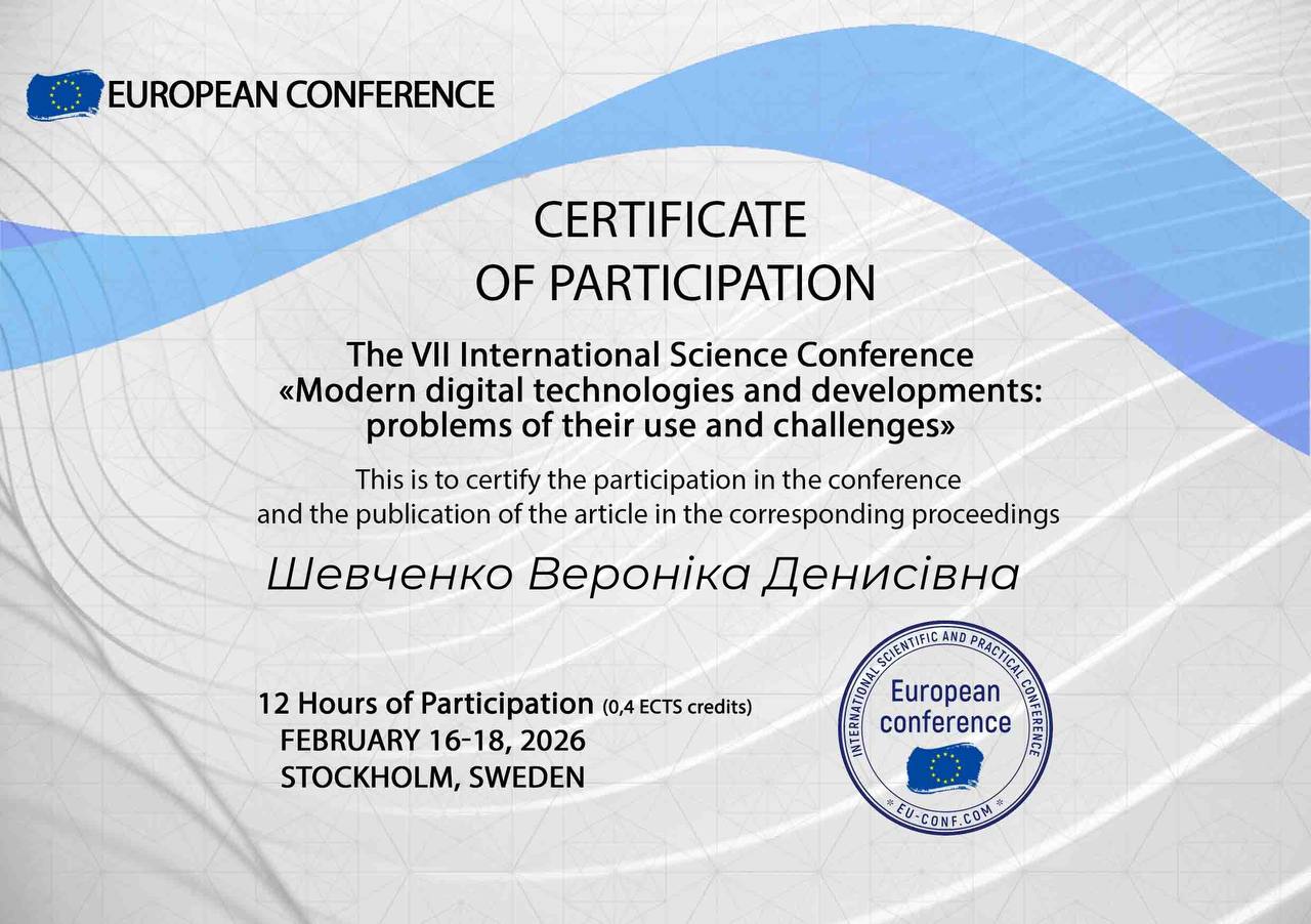 Студентка 3 курсу спеціальності 072 "Фінанси, банківська справа, страхування та фондовий ринок" Шевченко Вероніка взяла участь у міжнародній науково-практичній конференції.